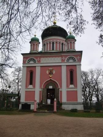 Findet die Kirche in Potsdam. Begebt euch zum Haupteingang der Kirche und peilt von dort 260° (wahr) auf eine Entfernung von 80 Metern den cache an.