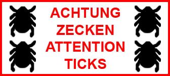 Nach einigen Berichten über das hohe Aufkommen von Zecken im Zielgebiet, bitte ich alle Cacher ein gutes Zeckenspray zu benutzen und sich zusätzlich nach der Suche gut zu kontrollieren oder vll. auch erst im Winter diesen Cache zu heben.