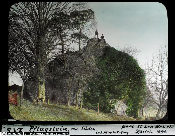 The 11 metres high Pflugstein (literally plow-rock) is the largest glacial erratic in the whole canton of Zurich. It is located next to the border of the communities of Erlenbach and Herrliberg. The rock itself stands on the Herrliberg side.