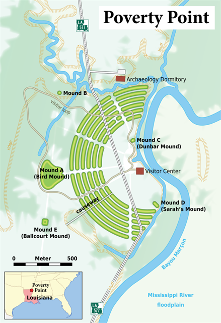 This earthcache is located at the Poverty Point World Heritage Site and was developed with the full cooperation and permission of the Park Manager and with assistance provided by personnel in the Park Museum. Please be very respectful of this priceless historic site and enjoy your visit. The park is open 9 am to 5 pm daily and is closed Thanksgiving, Christmas and News Years Day. There is a $4 per person entry fee to be paid at the Museum. Make sure and ask for the driving tour guide brochure, it will be needed for the cache tour