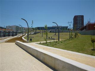 Para a parcela de cota mais elevada, foram executados “espaços mais dinâmicos e animados, com a introdução de um café, uma esplanada e a ‘nascente da linha de água’, bem como zonas arborizadas, floridas e relvados com bancos e mesas e vários percursos pedonais”.