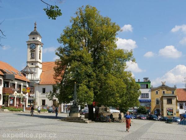 Kašna z roku 1756 stojí na místě původní městské radnice zbourané v roce 1717. Socha sv. Floriana patří k vrcholným dílům sochaře Josefa Antonína Winterhaltera.