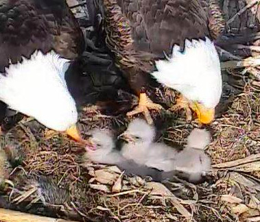 The webcam allows us to literally have a bird’s eye view into the lives of the eagles. According to the Cedar Rapids Gazette, "During the 2010 nesting season, the site recorded more than 325,000 unique visitors from 125 countries, and nearly 3.9 million site visits as viewers logged in repeatedly to check the progress of the three chicks hatched there in early April." You may view the eagle webcam at this website: Decorah Eagle Cam
