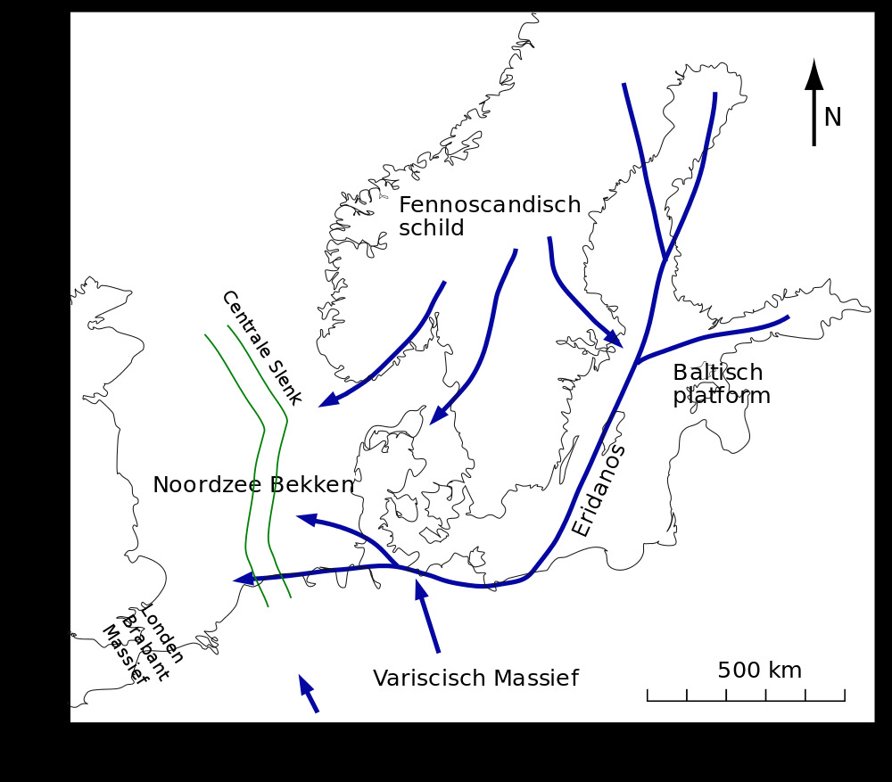 The reconstructed map of amber river ERIDANOS with teh biggest amber deposits in its delta in Sambian peninsula (after: Kosmowska-Ceranowicz 1991/1992, 1995)