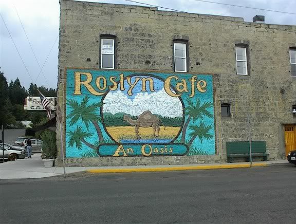 Roslyn was founded in 1886 as a coal mining town. Platted by Logan M. Bullet, vice president of the Northern Pacific Coal Co., the first commercial coal mining operations were begun to support railway operations. Throughout the middle 1880s, the Northern Pacific Railway, the parent of Northern Pacific Coal Co., pushed to reach Puget Sound across the Cascade Mountains. The Northern Pacific began building across Stampede Pass just west of Roslyn, approaching from Wallula in the east and Tacoma in the west. A 77 mile (124 km) gap remained in 1886. In January of that year, Nelson Bennett was given a contract to construct a 9,850 foot (3,002 m) tunnel under Stampede Pass, completing it in 1888. Roslyn, which lies on the route to Stampede Pass, provided the coal for the railway construction work as well as the continuing railroad operations. The Roslyn Cafe was featured in the opening credits of the television series Northern Exposure. Thanks Wikipedia