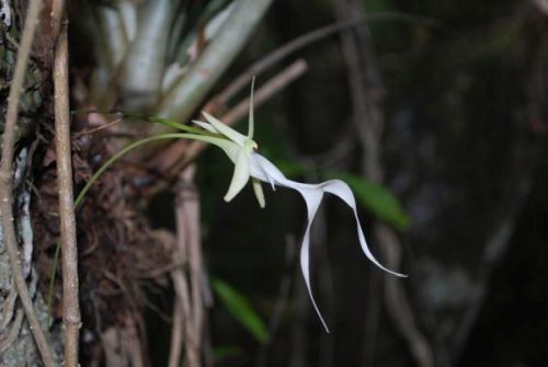 You may also see many bromeliads and orchids in a cypress swamp. These plants are called epiphytes. Epiphytes live on trees in the forest but cause no harm to trees. Some bromeliads get water and minerals directly from rain. Others funnel rain into a rosette of broad overlapping leaves. These “storage tanks” collect debris from the host plant, wind and insects, which in turn provides a rich nutrient liquid for the bromeliad. These bromeliads also provide a safe shelter to many small organisms such as frogs and insects. Whole food chains can be found on one plant. A few species of bromeliad, like the catopsis, have become insectivorous.