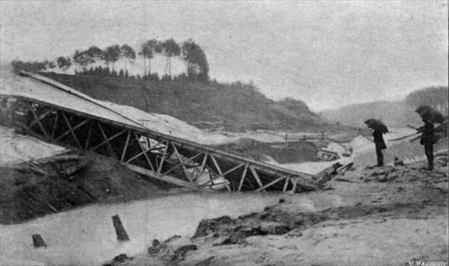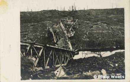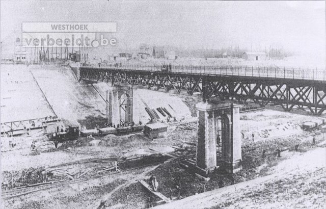 Optional : go to N 50° 48.754' E 002° 55.130'. At that place there once was an info panel that gave the history of the construction and collapse of the bridge in 8 historical photo's. There are different remainders of the bridge support and the brick and concrete cover of the talud slope.