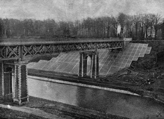 Vraag 2. Hoeveel meter lag het brugdek van de brug van 1910-13 onder het oorspronkelijke hoogte van het terrein ?