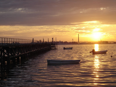Da Praia do Rosário pode-se observar um magnífico pôr-do-sol que se apaga lá atrás das chaminés do Barreiro.