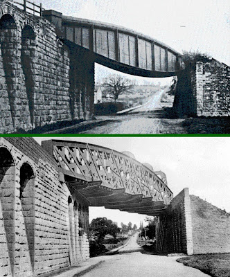 When the branch railway line met the A361 just west of Devizes it was carried above the road on a steel bridge. The first bridge had curved top and bottom edges and was nicknamed the Fish Bridge. Later the bridge was replaced with a girder one, but the name stuck.