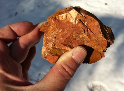 3. Wie groß ist die Dichte des hier gefundenen roten Stein? Dazu ist das Gewicht auf einer Küchenwaage sowie das Volumen mit Hilfe eines geeigneten Messbechers zu bestimmen. Die Formel zur Berechnung der Dichte findet Ihr im Internet (Vielleicht habt Ihr ja einen Stein mit hohem Eisengehalt gefunden…).