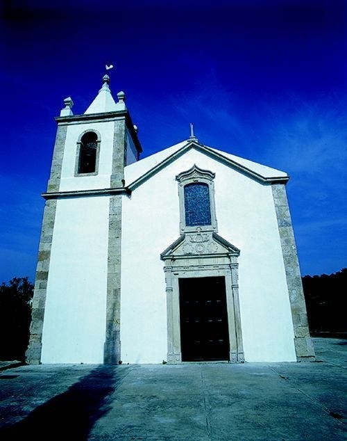 A frontaria da igreja tem empena de bico, rematada por uma cruz e flanqueada pela torre sineira de secção quadrangular que remata em coruchéu com quatro pinóculos.