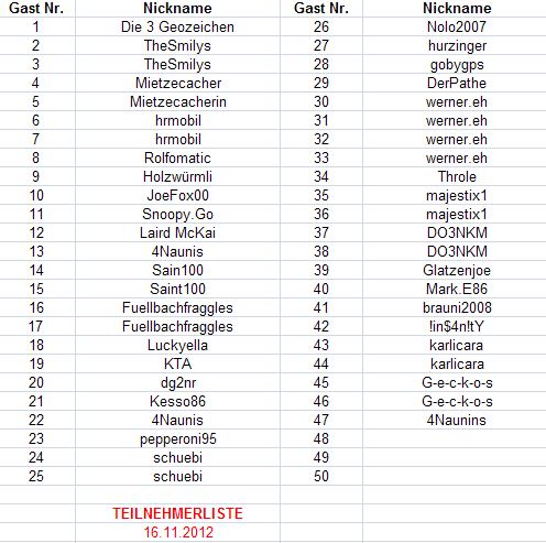 Wir bitten alle Teilnehmer, die unten angegebenen