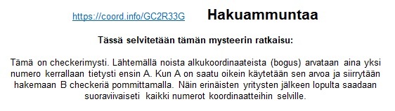 Hakuammuntaa Mystery Cache