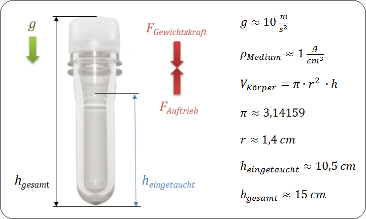 1. Wie groß ist die Auftriebskraft des PETlings, wenn er ca. 10,5 cm eingetaucht ist?