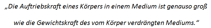 Die Auswirkungen der oben genannten Erkenntnis erscheinen uns alltäglich, den guten alten Archimedes
