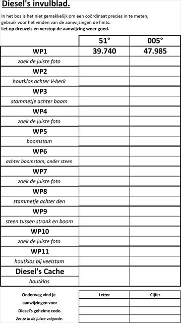 Team Diesel@Mill: De waypoints werden de laatste tijd te vaak geript en gesloopt. We kunnen door gebrek aan tijd de cache niet blijven herstellen.