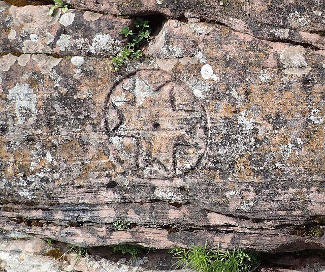 Jetzt geht es noch ein Stückchen weiter nach oben zu S2 bei N 49° 08.669 E 007° 53.785 mitten auf der Burg. Auf dem Gelände gilt es nun verschiedene Details zu suchen und zu finden.