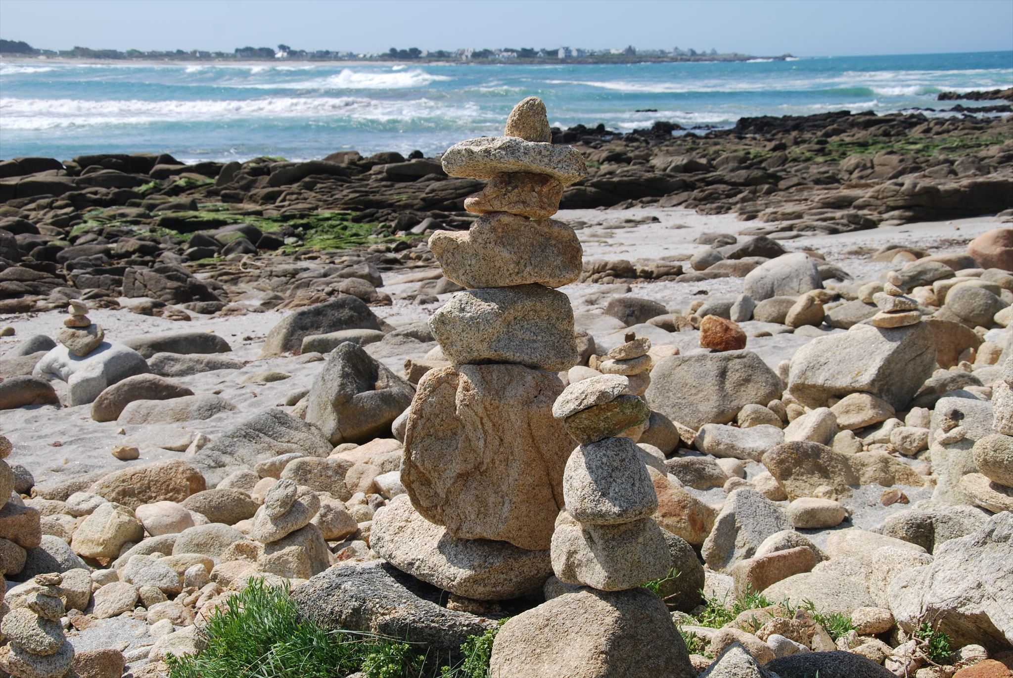 3) At the WP3, coordinates:N 47 ° 50.248 W 004 ° 21.186. Sit down on a rock, front of the sea, which we can observe behind you?