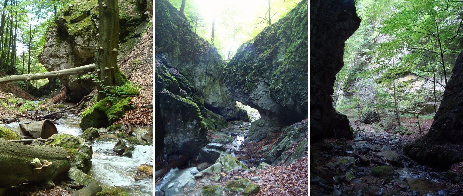 Potok sa dá preskocit na jeden šup, ale po daždoch môže byt hladina dost zvýšená, takže sa dá potom využit aj zostup priamo z asfaltky, ale hladanie bude o cosi tažšie bez listingu.