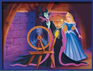 De repente, apareceu a bruxa Malévola, furiosa por não ter sido convidada para a festa; e lançou uma maldição: