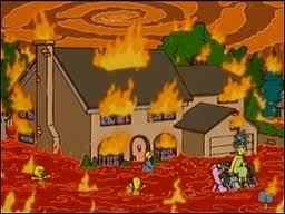 While sitting on the couch in heaven, watching TV, Homer finds the "Earth" channel, where he sees his family suffering in an unquenchable fire!