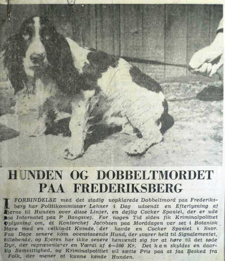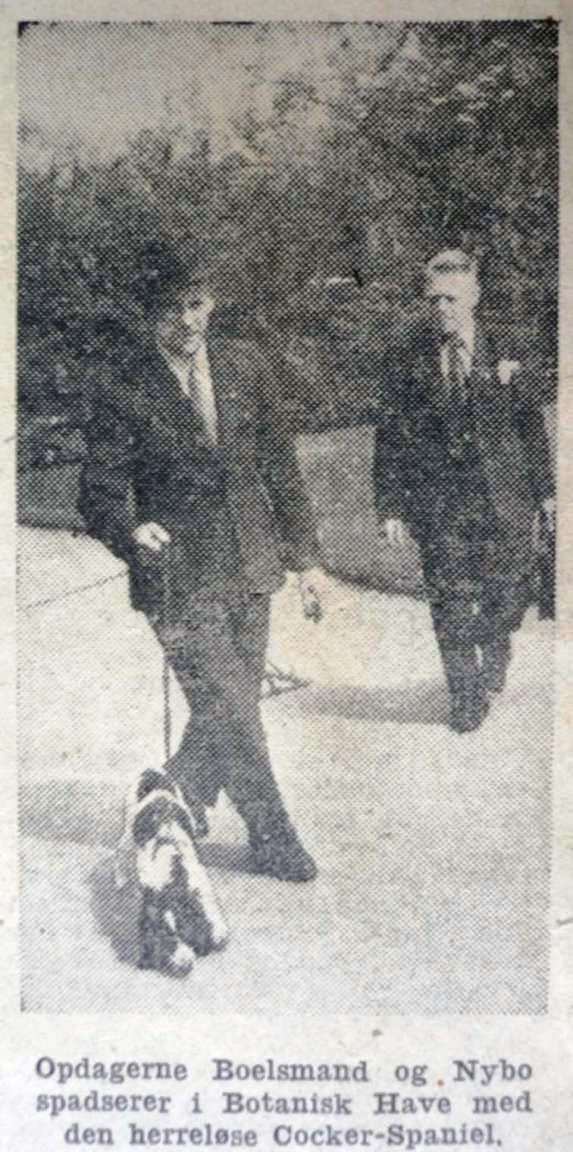 Han var set i selskab med en nydelig velklædt yngre dame, der medbragte en Cocker Spaniel i snor. Politiet brugte mange ressourcer på at finde damen med hunden. Samtlige politistationer i København arbejdede i døgndrift på at gennemgå hunderegistre. Mange kendte og ukendte damer blev udpeget som "Damen med hunden i Botanisk Have".