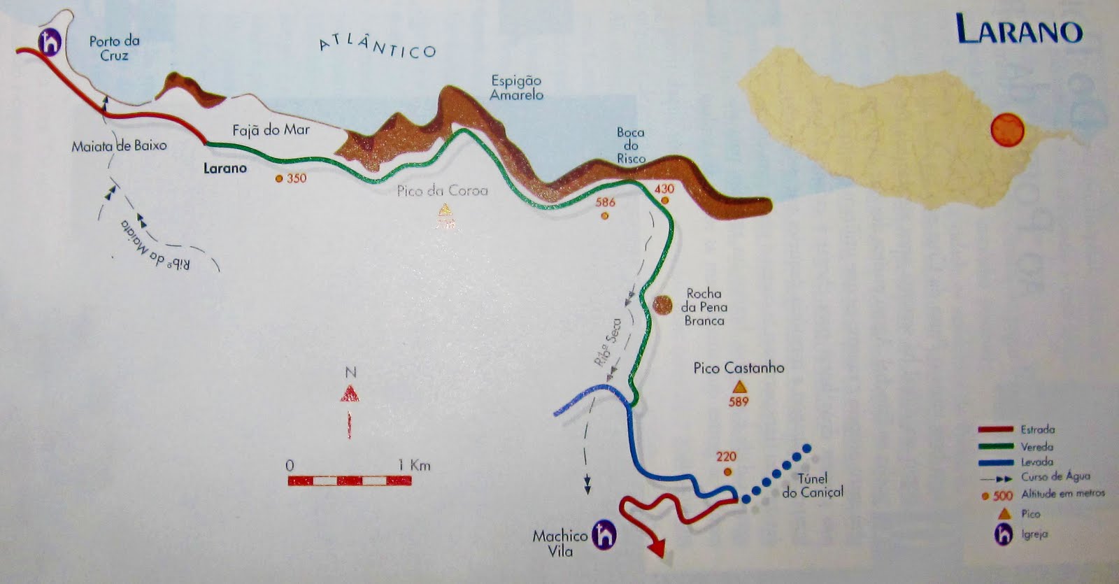 Despite the proximity of mileage, Larano for centuries has been more than three hours away of what was then the village of Machico. A path carved into red volcanic rocks and dark basaltic dikes on the edge of a cliff more than three hundred meters above sea level, was the only access. It was through this path that the people of Porto da Cruz walked when they had to visit the neighboring village.