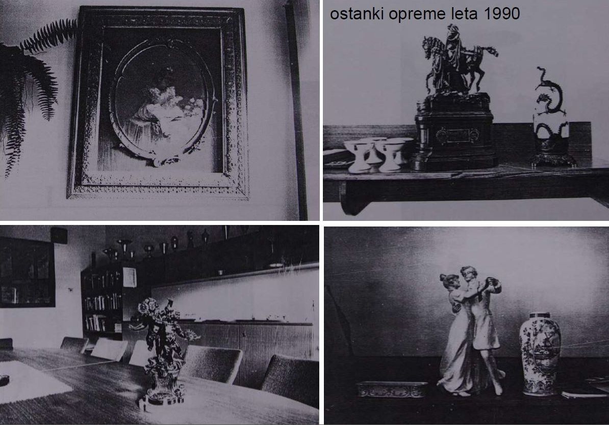V notranjosti je več reprezentančno opremljenih prostorov. Gosposka soba ob severovzhodnem stolpu ima rezljane neogotske stenske obloke in imeniten, bogato profiliran neogotski portal s sočasnimi vratnicami, v nadstropju je več vrat z neogotskimi vratnicami in sočasnimi rezljanimi supraportami, v več sobah je na stropih kvaliteten štuk iz časa regotizacije stavbe." (Stopar, 1990)