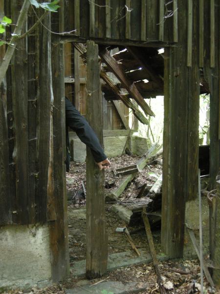 Dort findest Du eine verlassene Holzhütte.
