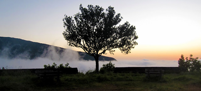 DO MIRADOURO DA BOCA DAS VOLTAS em São Jorge, Santana, é possível desfrutamos bonitas vistas sobre as Falcãs, Achada da Madeira, Lombo do Urzal e mais ao fundo sobre a foz da Ribeira do Porco .