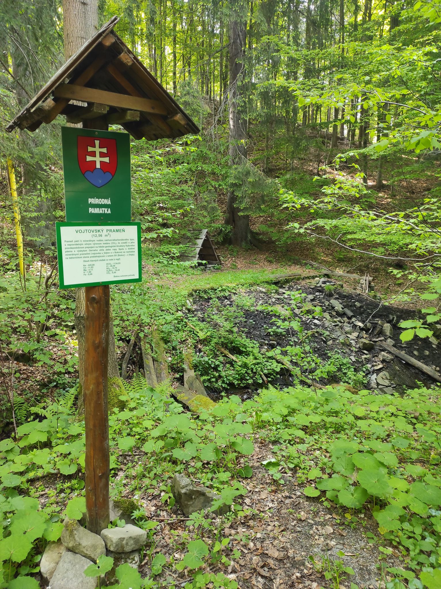Chránený prírodny výtvor "Vojtovský prameň" vyviera v smrekovom lese,
