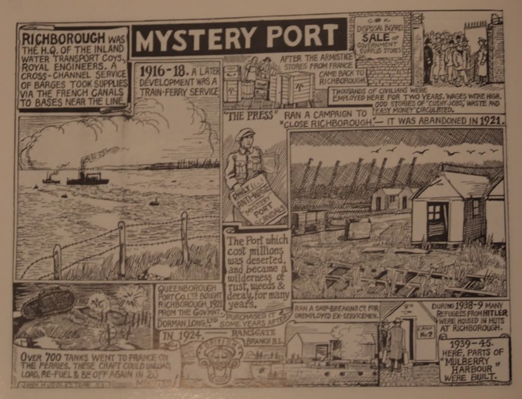 During the First World War 1914/18 a secret port by the banks of the River Stour was the starting point of a ferry service for troops and munitions to France and Flanders. Camps were occupied by thousands of soldiers who were taken by day or by night across the North Sea and the Channel to Dunkirk and Calais