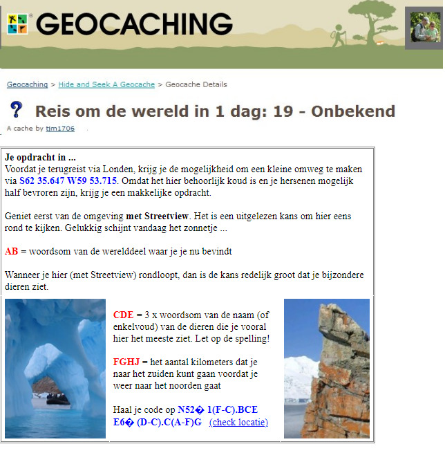We hopen dat je geniet van elke etappe van de gevarieerde reis om de wereld. Voor het oplossen van de opdrachten kun je eventueel gebruikmaken van ons "gereedschapkistje voor de reizende geocacher". Met de uitkomsten van de opdrachten kun je een mooie fietsroute samenstellen langs 20 geocaches richting de bonus-cache. Deze fietsroute kun je downloaden. Elk waypoint ligt maximaal 3 meter vanaf een (zij)pad van de route. We hebben toestemming van de gemeente Voorst, gemeente Apeldoorn, Veluws waterschap, RGV Bussloo en stichting Beekzicht voor deze gevarieerde fietsroute van 27 km. De teams Odlaniger, Dhmc05 en Iron Six hebben geholpen om deze geocache te verbeteren. Goeie reis!