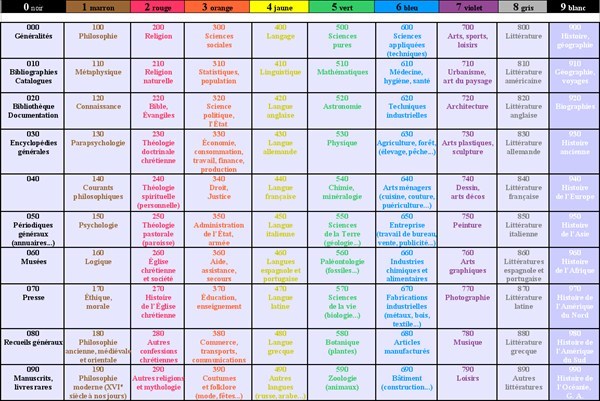 Melvil acceptât. Et après quelques heures de réflexion il accoucha d’un tableau permettant de classer les ouvrages.