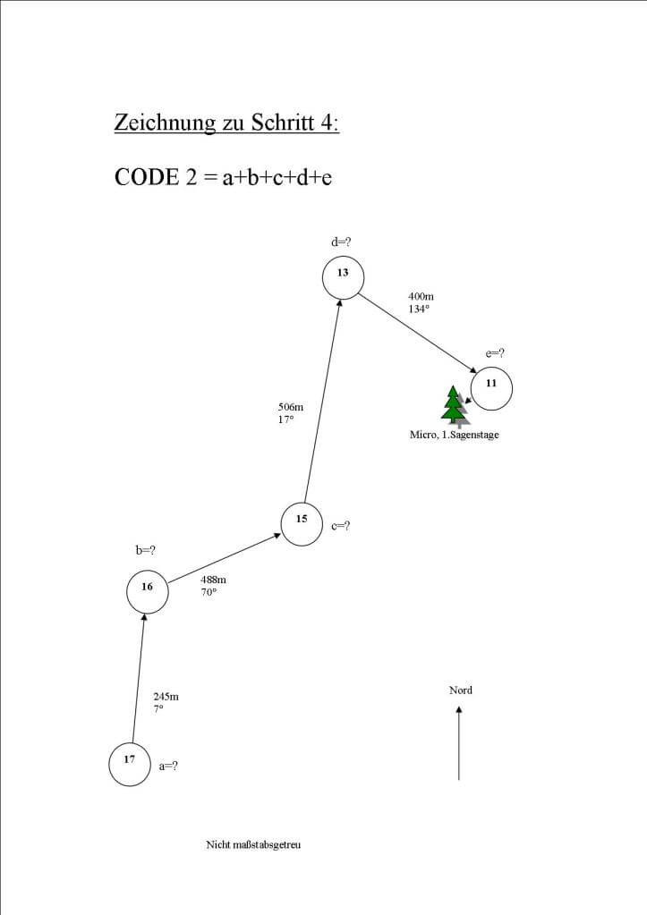 Wenn du den Weg durch den Wald beschritten hast, kannst du am Ende einen Micro finden. Dieser enthält die Erzählung einer Sage, die sich in jener Gegend abgespielt haben soll (2. Sagenstage).