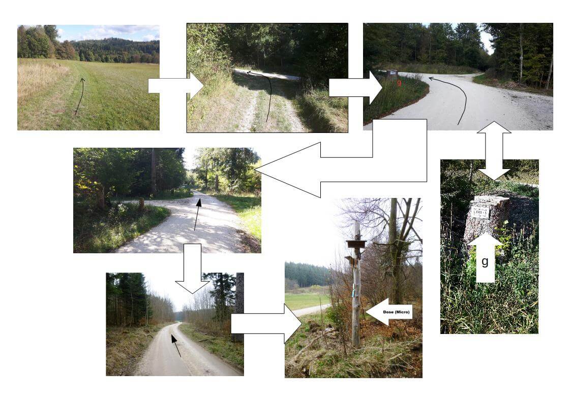Dieser Schritt führt dich durch ein Waldgebiet, finde dabei deinen Weg anhand der abgebildeten Fotos (siehe Bilder Schritt6).