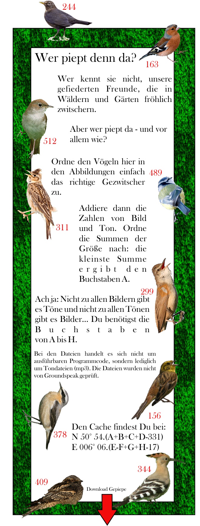 eigengott: Da es hier seit Monaten keinen Cache zu finden gibt, archiviere ich das Listing, damit es nicht mehr auf den Suchlisten auftaucht bzw. neue Caches blockiert.
