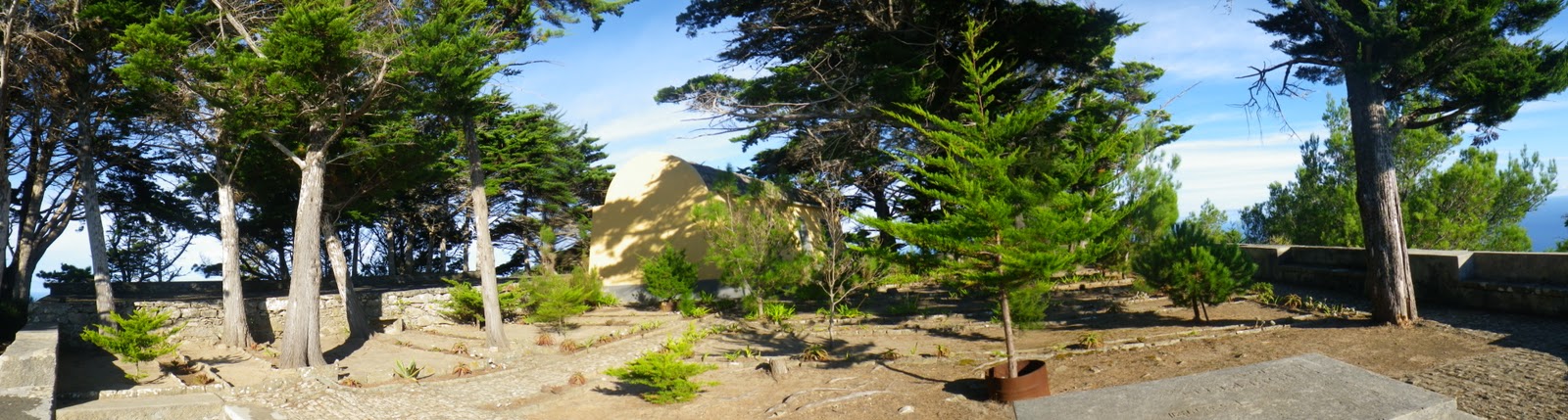 The highest point of Pico Castelo reaches 430 meters in height, lying almost on top is the bust in honor of Schiappa de Azevedo, who contributed greatly to the afforestation of the hill, once more desertified, there are also the ruins of a sixteenth century fortress , a symbol of defense of the people on the island from continued pirate attacks during turbulent centuries.