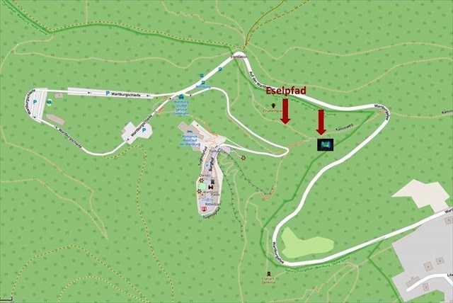 der Aufstieg lang. An der Wendestelle der Esel halte Dich links