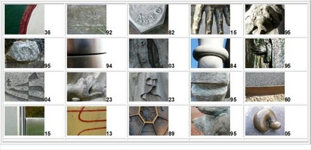 Van alle kunstwerken is een detailfoto gemaakt met daarbij een getal van twee cijfers. Dit getal correspondeert met de twee letters bij elk Wpt, bv AB= 52, A=5 en B=2