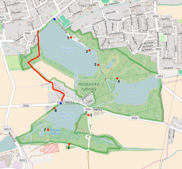 Vychozi souradnice vas privedou na krizovatku ulic Litovicka a Na hrazi - na dohled od pocatku NS. Dale pokracujte stale na JV po hrazi Litovickeho rybnika a nasledujte
