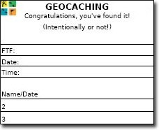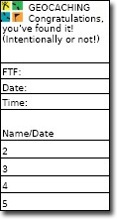 Do kešky veľkosti NANO stačí napísať iba vašu prezývku, aby ste šetrili miestom a mohlo sa zapísať čo najviac hladačov.