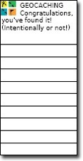 Čo do takého logbooku napísať? No predsa log. Log je záznam o nájdení kešky. Viac o všetkých možných druhoch logov sa dočítate napr. i tu (