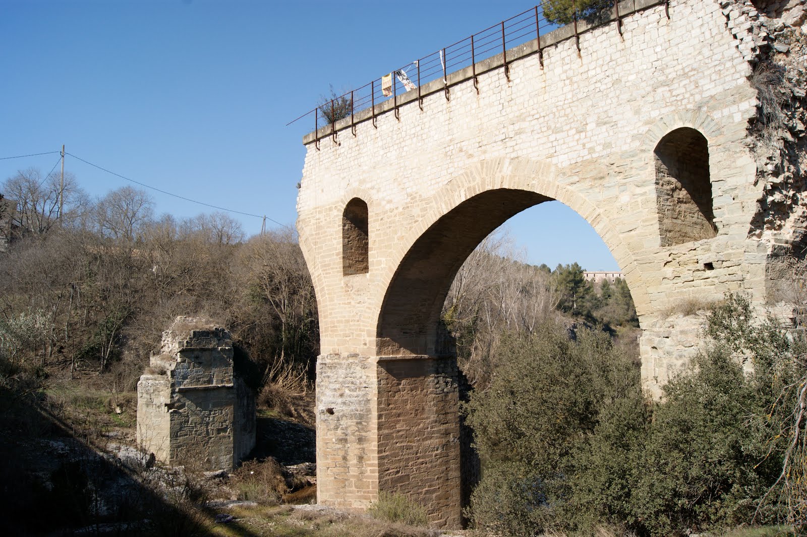 La luz del mayor de los seis arcos era de 17 metros por 109 de largo, 20 de alto y 3,40 de ancho. Volado por la Retirada (1939), quedan los pilares y el tercer arco.