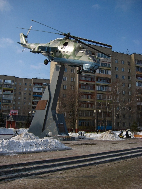 In 2008 in Lubertsy was erected a monument to Soviet soldiers, who fought in Afghanistan. It was made in a form of a pillar with the Mi-24 helicopter on its top. "For those, who never came back" - the memorial sign in the basement of the monument says. The street, on which it'situated is also named after those, who fought outside the Soviet Union, the international wariors, as we call them in Russia (ulitsa Voinov-internacionalistov).