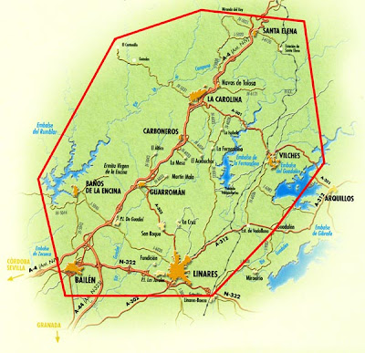 “El distrito minero Linares-La Carolina, ubicado al norte de Jaén, abarca una zona que se extiende desde Despeñaperros (en Sierra Morena) 40 km. al sur con una anchura de este a oeste de 30 km. El mineral extraído se conoce como Galena argentífera compuesto de azufre, plomo y plata. La cultura de la parte oriental de la costa mediterránea sistemáticamente ha colonizado una gran parte del distrito desde 4000 años atrás, en la Edad del Bronce. Los romanos extendieron su dominio sobre la zona y establecieron un gran número de operaciones mineras cerca de Linares (Arrayanes, La Cruz) y también en las montañas de Sierra Morena. En los tiempos modernos, la utilización de la tecnología de vapor en todo el distrito, procedente de la región de Cornualles, para extraer mineral de las minas se introdujo por primera vez en 1849 con la instalación en Pozo Ancho de la primera máquina de vapor. La cual marcó el inicio de los principales acontecimientos de la minería en el distrito, principal productor del mundo de plomo desde 1867. El distrito minero Linares-La Carolina surgió en el siglo XIX, siendo la minería industrial uno de los principales centros internacionales de referencia. Los siguientes son los ejemplos más importantes que se encuentran en este distrito minero: minería, casas de máquinas, las fundiciones, grúas, chimeneas, tanques de lavado de mineral, talleres, oficinas, líneas de ferrocarril, los cuartos de los trabajadores, maquinaria y vertederos. Un gran número de minería industrial y elementos arquitectónicos se conservan entre ellos: el Derby y Pozo Ancho, Lord Stanley, Lord Salisbury, Derwey y grúas, y La Tortilla (1875), La Cruz (1825-1986) y San Luis (1890 -1919). Hogares en Linares, Los Guindos, barrios en La Carolina y el espléndido conjunto de El Centenillo en Barrios de la Encina (campo de fútbol, los hogares de los solteros, el casino, la iglesia, los hogares de los mineros, los ingenieros y jefes), todos dan testimonio de la evolución de la minería en este distrito. El ferrocarril también dejó su marca indeleble en el territorio en términos de vías y estaciones.”