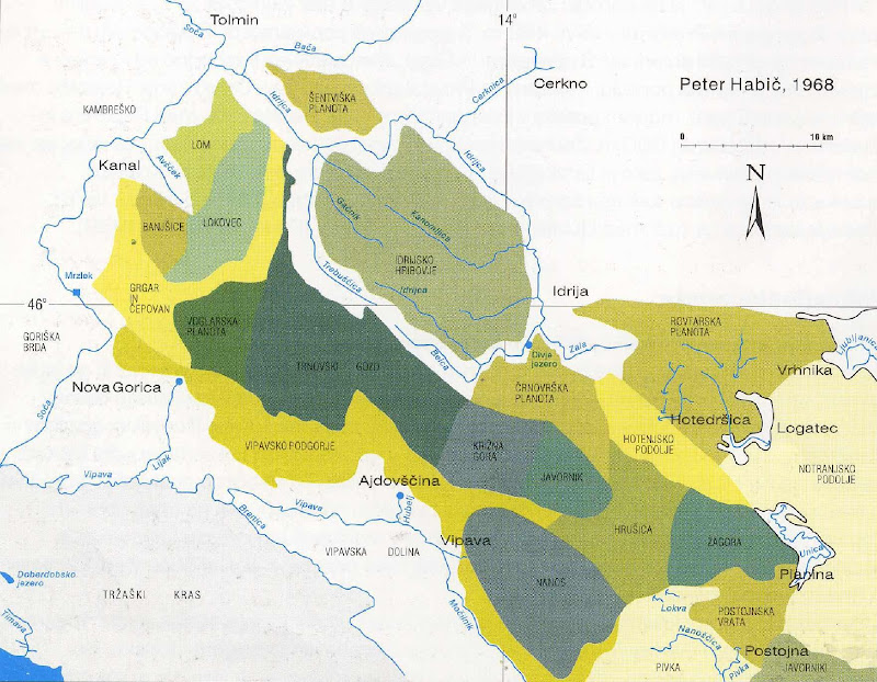 Area of Trnovski gozd, Banjšice plateau, Nanos and Hrušica covers approximately 700 km2, which represents 3.4% of Slovenian territory or 7.8% of Slovenian karst surface. The whole area can be divided according to their lithological permeability into several hydrogeological units:
