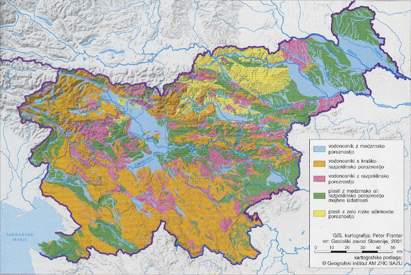 - dobro prepustna območja - vodonosniki s kraško in razpoklinsko poroznostjo
