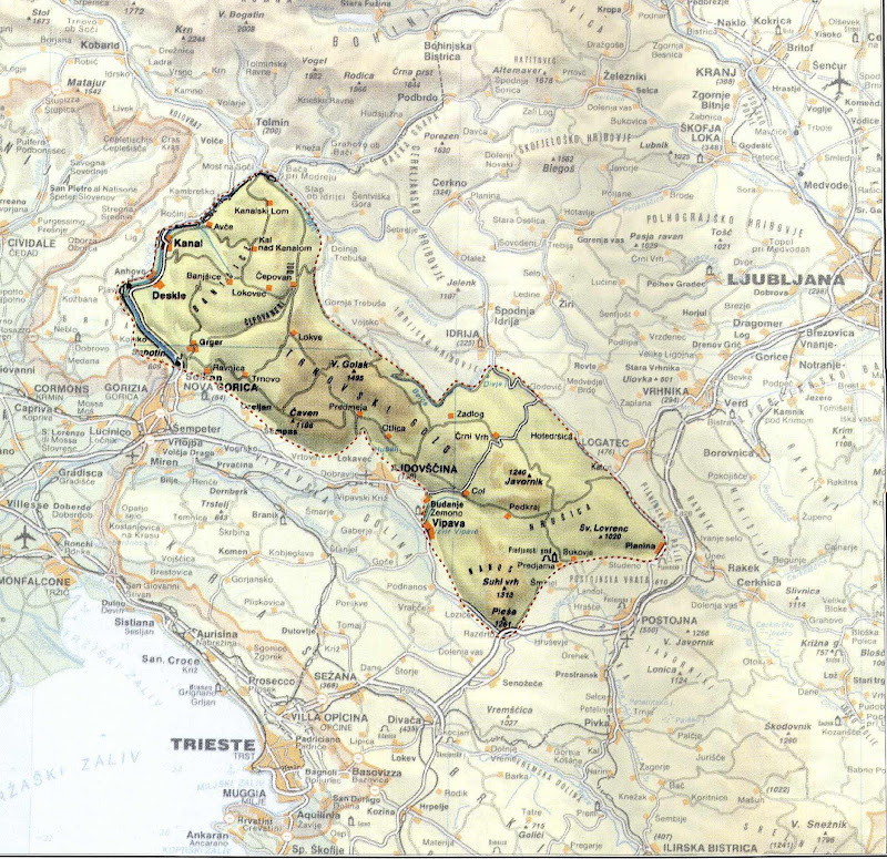 The High Karst is the most western part of Slovenia. It lies between the Adriatic Sea and the eastern hills of southern limestone Alps. Belt of carbonate rocks structurally belongs to the Dinaric Alps. It is 10 to 15 km wide, about 50 km long and covers approximately 700 km2. High Karst is dominated by deep karstified Cretaceous and Jurassic limestone and Triassic dolomites, which on the northwest sink beneath the younger, predominantly Eocene flysch rocks. Flysch is surrounding karst limestone of Trnovski gozd and adjacent plains on the south and east sides and acts as a hydrogeological barrier. On the north side the High Karst is mostly surrounded by an impermeable middle and lower Triassic, Permian and partly Cretaceous / carbon rocks in which river valleys of Belca, Idrijca, Trebuša, Hotenka, Kanomlja and Zala are incised. In their river basins, especially on the Vojsko plateau, there are a few minor faults, caves and karst springs.